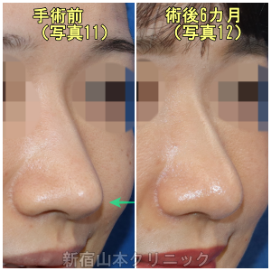 こうした内部の形状を整えると、笑った時に鼻先が尖っていた(写真11)ものが、術後6か月(写真12)では、改善している事がお分かり頂けます。