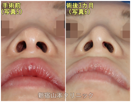 下から見た状態を比較(写真5, 6)すると、鼻先が細くすっきりと高くなっていることがお分かり頂けるはずです。