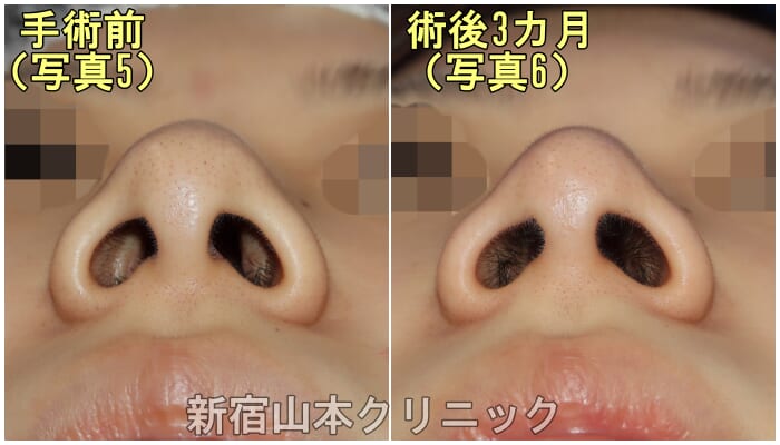 下からの状態を比較すると術前(写真5)と術後3か月(写真6)では、鼻先の変化が分かり易いと思います。