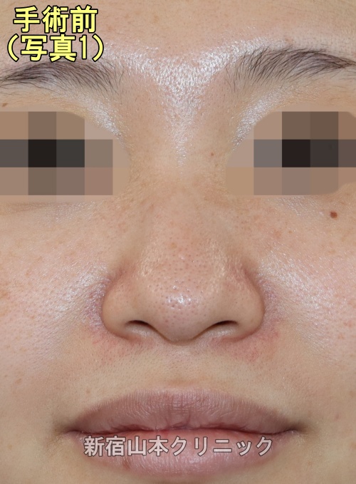 小鼻縮小術の笑った状態の変化は、相変わらず他院では紹介されているものをほとんど見ません。フラップ法や埋没糸を使う方法では、笑った時に痛みが出たり、引きつったりすることがあるので、このためかもしれません。手術前後で笑い顔がどのように変化するのか、手術に対してのデザイン、縫合も含めてご紹介したいと思います。 では、術前(写真1)、術後3か月(写真2)の正面の状態を比較して頂きたいと思います。