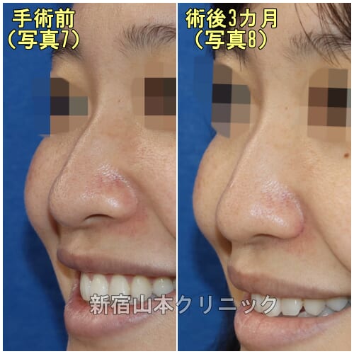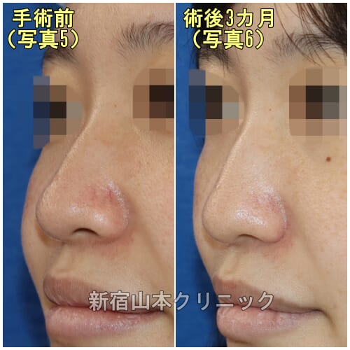 斜めから見て頂くと、小鼻の位置若干上がったこと、鼻の穴の見え方が変わったことが認識できるはずです(写真5, 6)。